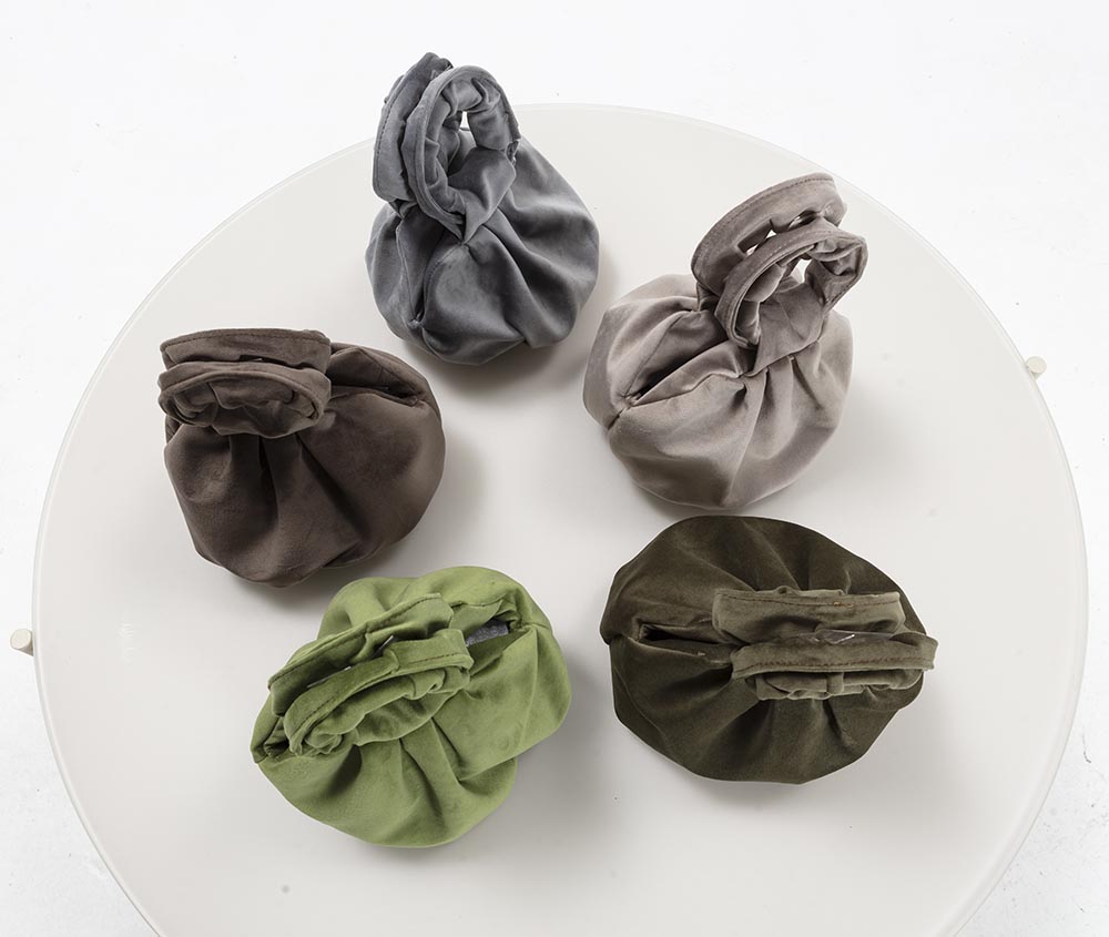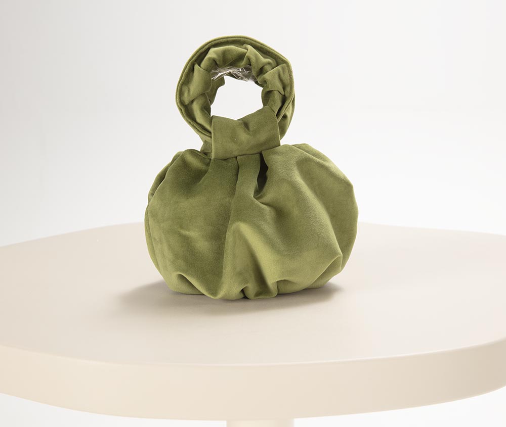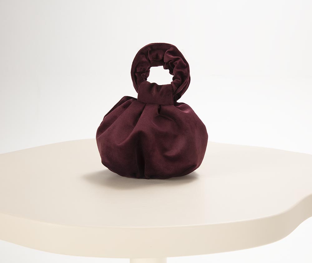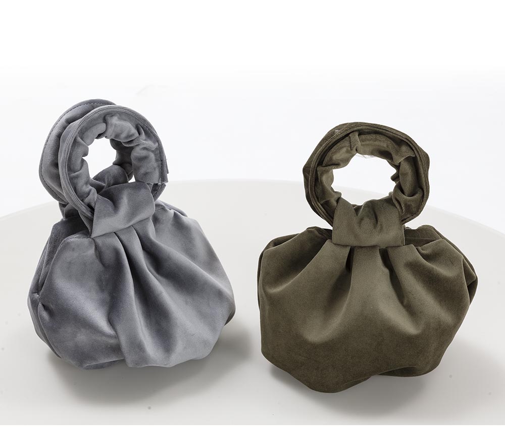 Bolso de mano con forma de bola y asas redondas hecho con terciopelo. Disponible en varios colores.