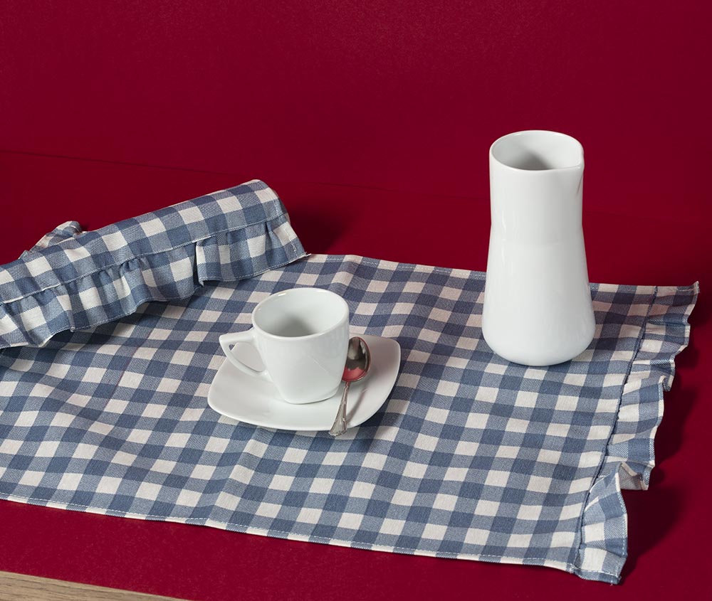 Individual resinado con volantes en los lados. Hecho a mano en España.
