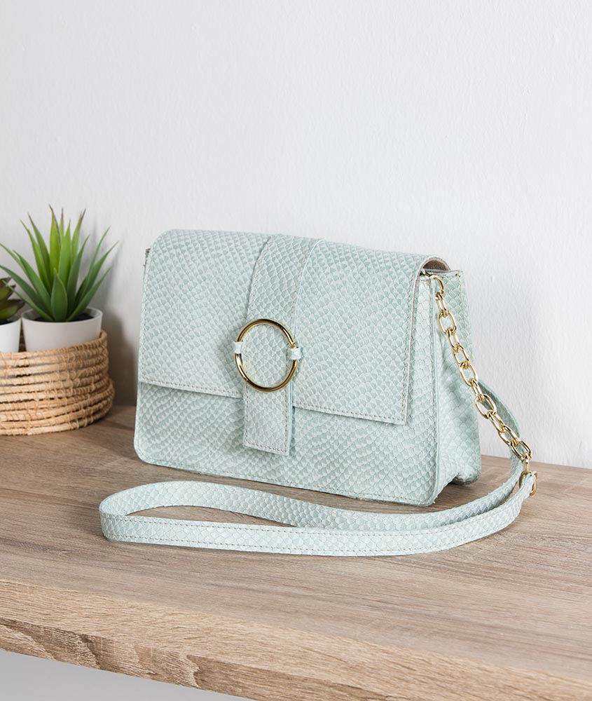 Bolso pequeño de piel natural en color rosa suave con detalle dorado, lleva asa de colgar o de cruzar, va forrado y con bolsillo plano. Es el comodín ideal para este año,...